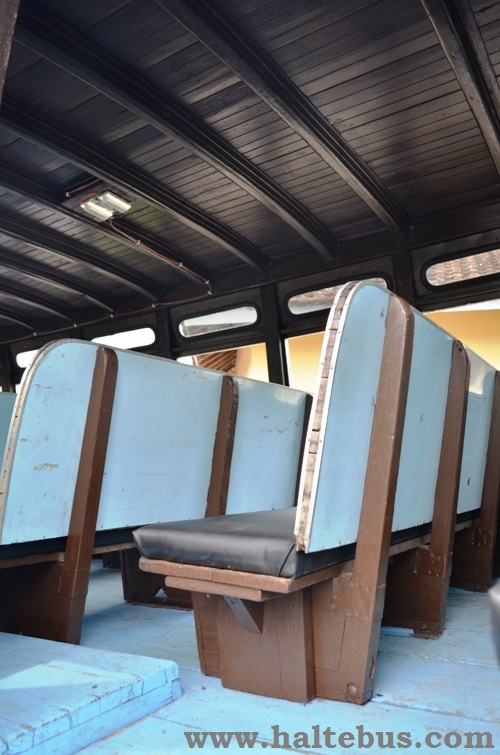 Melihat bus yang terbuat dari kayu, di era serba modern sekarang ini, pasti mengherankan siapapun yang melihatnya. Baik atap, dinding dan lantai semuanya terbuat dari jalinan kayu yang dirangkai dengan paku dan mur-baut. Kursi pun juga terbuat dari kayu. Agar penumpang nyaman, PT. Timah menambahkannya dengan busa tipis yang dilapisi bahan berwarna hitam. Hanya bagian kabin pengemudi saja yang mengikuti standar pabrikan, terbuat dari besi.