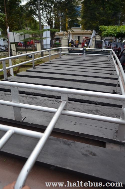 (Pangkal Pinang – haltebus.com) Dua unit bus sedang terparkir di sisi Selatan halaman Museum Timah Indonesia, Pangkal Pinang, Provinsi Bangka Belitung, Sabtu (18/2/17). Dari wajah keduanya, menunjukkan truk medium di era tahun 1980-1990-an, mungkin lebih dekat dengan minibus besar. Di bagian badannya terlihat bentuk bus yang sudah sangat langka ditemui di Indonesia. Maklum badan bus dibuat dari kayu. “Dua unit bus ini kami dapatkan dari pengusaha bus berbeda, sebagai bentuk perhatian kami untuk melestarikan sejarah di daerah ini,” kata Hikmat Slamet, Sekretaris Pengurus Museum PT. Timah menjelaskan tentang kedua bus itu.