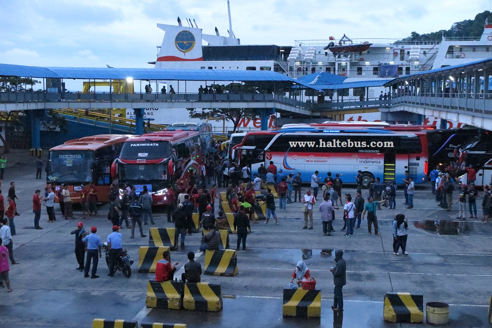 Untuk peserta dari Jawa yang datang dengan 18 unit bus berkumpul di Rumah Makan Jokowi, Merak. Dari sini mereka konvoi dan bersiap menyeberang di Dermaga I Pelabuhan Penyeberangan Merak. Seluruh peserta dimuat ke dalam kapal Karina II. Manager PT. Dharma Lautan Utama, Cabang Merak-Bakauheni, Sunaryo menyambut rombongan dan menyiapkan hiburan khusus selama perjalanan. “Kami sengaja mendatangkan Novi peserta kontes dangdut di televise langsung dari Sukabumi, semoga peserta Jambore Bismania Community bisa terhibur,” katanya.