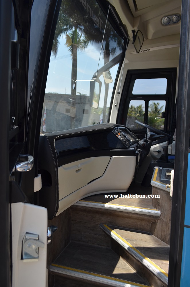 Sementara di sisi interior, ada beberapa perubahan yang sebenarnya sudah diaplikasikan di produk yang dipamerkan di GIIAS 2016 lalu. Lampu yang unik dihiasi dengan louver AC yang memudahkan penumpang mengatur derasnya luncuran angin yang dingin dari saluran AC. “Saya senang dengan interior Karoseri Laksana karena setiap ada yang baru, selalu ada yang berbeda juga,” kata Dwi Apriyono dari PO. Riyan, Cilacap.