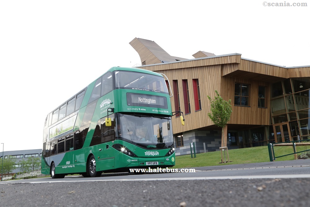 Agustus 2017 menjadi catatan sejarah bus Scania double decker berbahan bakar gas di Inggris. Sunderland mengawali operasional perdana bus bio-gas (yang dihasilkan dari daur ulang kertas) pada 1 Agustus. Selang 16 hari kemudian, giliran Nottingham City mengumumkan investasi pembelian bus double decker bio-gas sebesar £ 17 juta. Government’s Office for Low Emission Vehicles (OLEV) Inggris memberikan bantuan £4,4 juta untuk program pembelian total 30 unit armada bus baru ini.