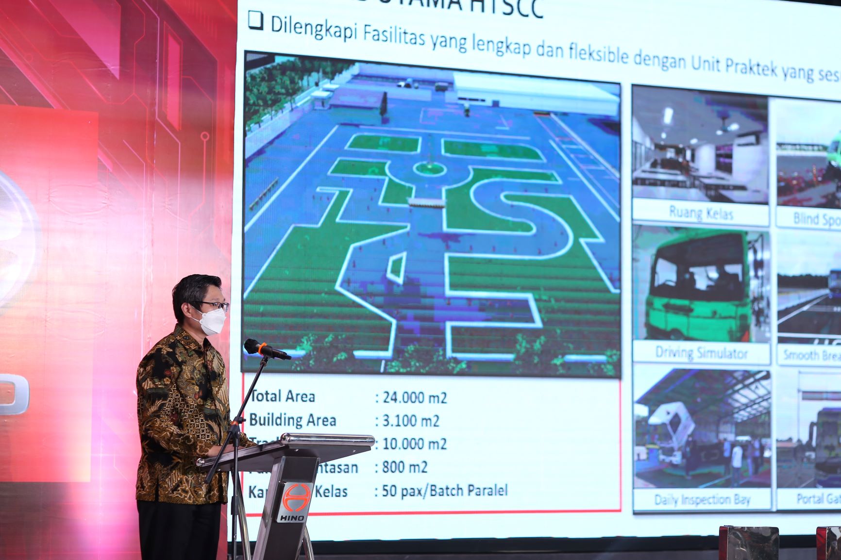 HTSCC dibangun di atas lahan seluas 24 ribu meter persegi. Ini terobosan baru bagi Hino Indonesia. Pabrikan kendaraan komersial asal Jepang itu menjadi yang pertama memiliki tempat pelatihan pengemudi lengkap dengan area praktek sekaligus memberikan sertifikat bagi setiap lulusannya. PT. HMSI memberikan pelatihan pengemudi truk dan bus, khususnya untuk produk Hino.