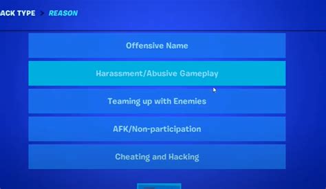 Select the reason you want to report the player. On xbox, press the menu button. Select one or more of the following reporting reasons in the table below; On switch, press the + button. Select the cog in the top right corner of the all chat interface, and select 'report'.